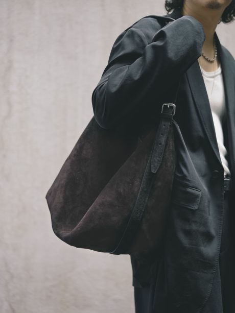 コンパクトに見えますが実はPCを縦でも横でも収納できるくらい実用性の高いアイテム。ストラップの長さ調整も可能であらゆる着こなしに相性よくまとまる様考えて制作しています。