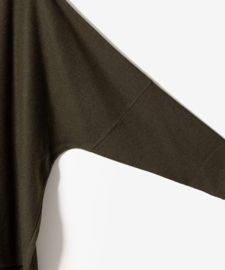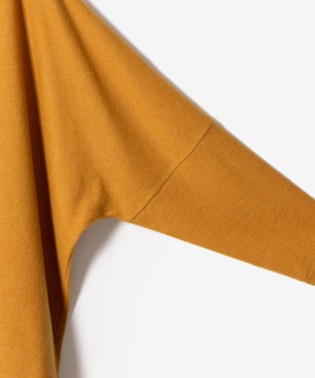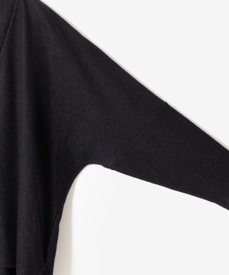 今回のブークレ素材は、そのアムンゼン組織で編み上げているので、ウールの柔らかさと優しさの中に、モードなシャリ感が共存しているという、非常に珍しい生地になっています。