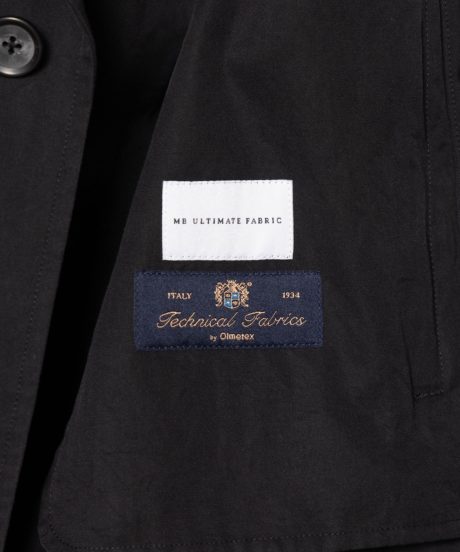 バーバリーのトレンチコートなどでよく使われるイタリアを代表する生地メーカー・オルメテックス。今回は同社のアイコン的素材であるラグジュアリーギャバジンを採用、そこに製品加工を加えてラグジュアリーミリタリーをテーマに企画しました。