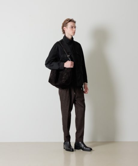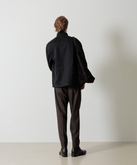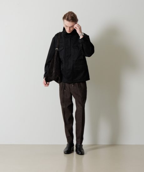 そんなラグジュアリーウールを使ってこちらもまたフランス軍のカーゴパンツを制作。これ最高クラスに気に入っています。色は3色!チャコールとブラックとネイビーです。
