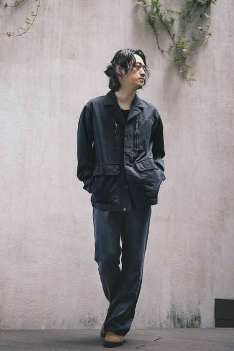 シワにならないトリアセテート素材を使ったジャパニーズモードを感じさせるセットアップ。もちろん単品使いもOKです。