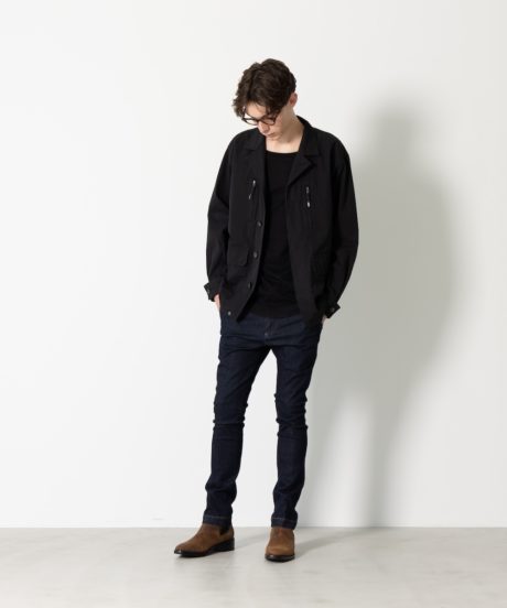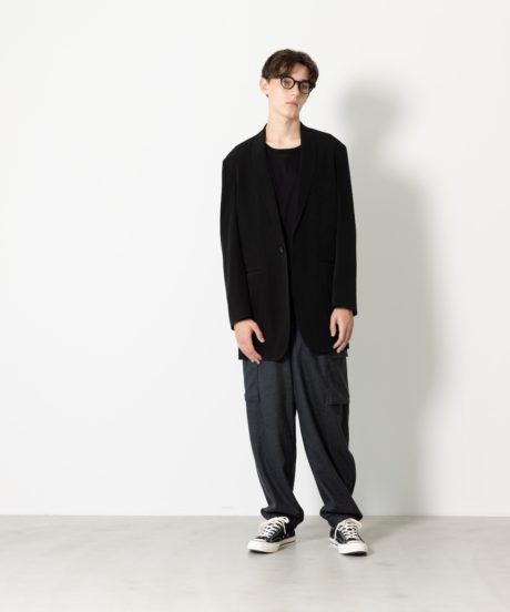 ジャケットはややロング丈に仕上げており、このセットだけで一気に雰囲気が出る仕様。モードスタイリングが好きな方は絶対に見逃さないで。後悔しますよ。