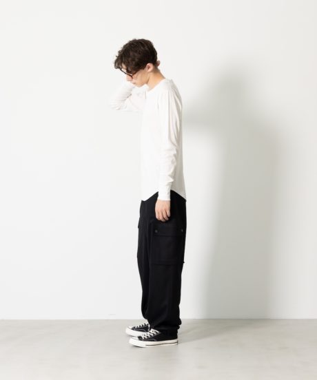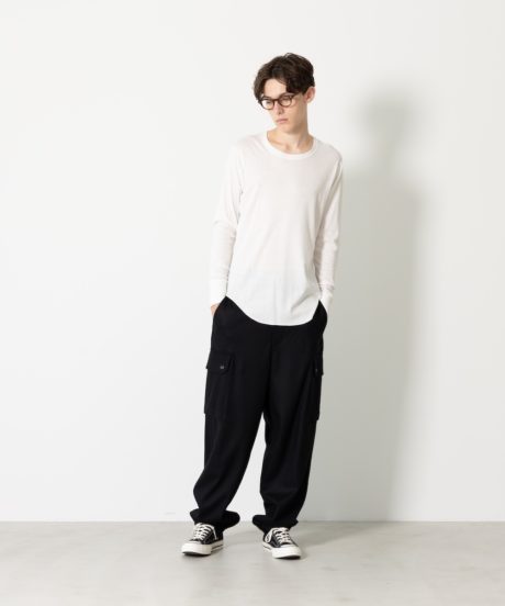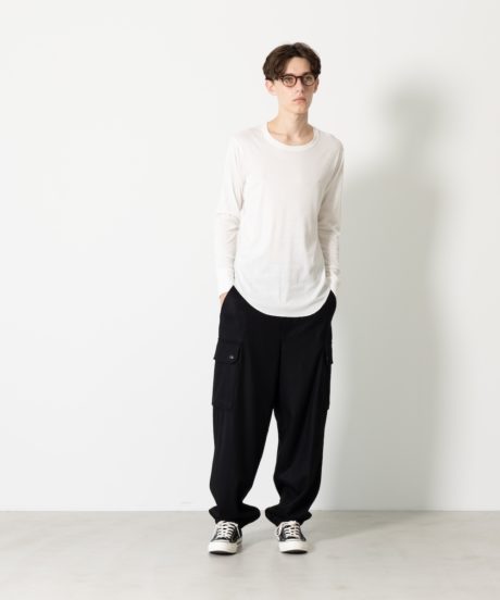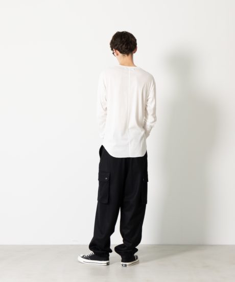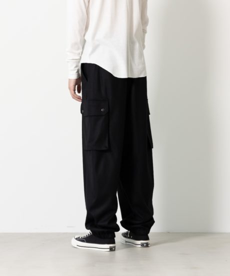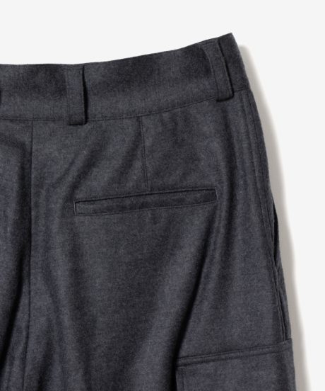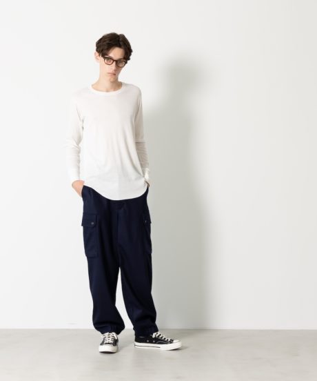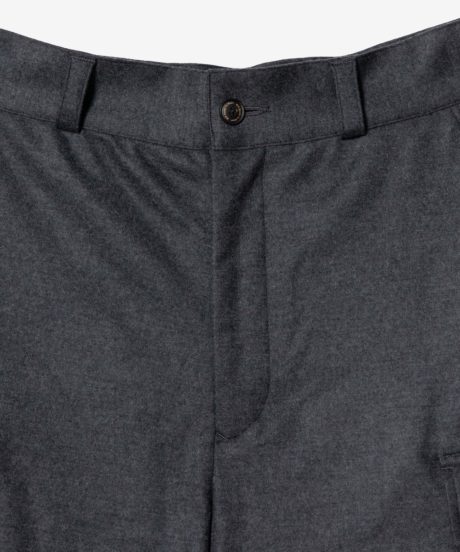 分かりやすく言えば、超贅沢なスラックス生地をそのままカーゴパンツに落とし込んだ、というのが一番シンプルな説明だと思います。