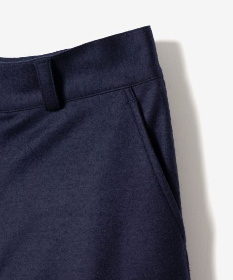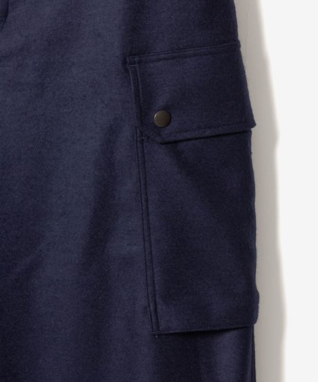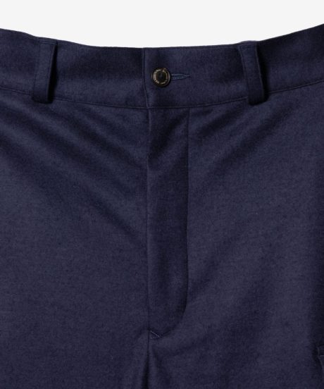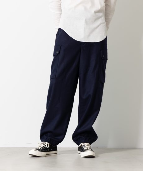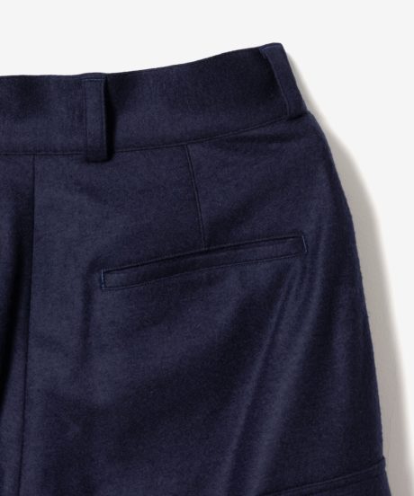 コットンのネイビーカーゴだと作業着っぽくなりがちですが、アクアレジェンドのウールで作ることで色気のあるネイビーに仕上がっています。