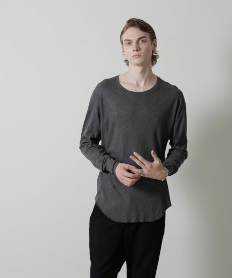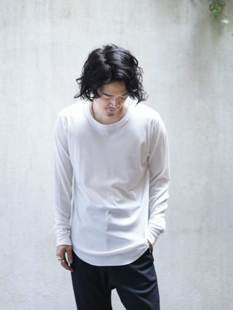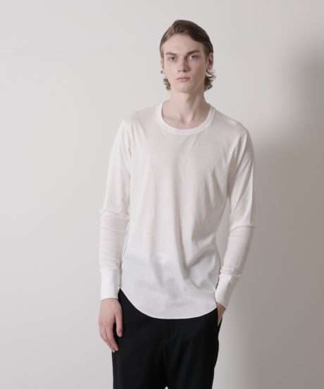 上にジャケットやシャツを羽織ってもバランスが取りやすく、春秋冬のインナーとしてはもちろん、1枚で着ても様になります。