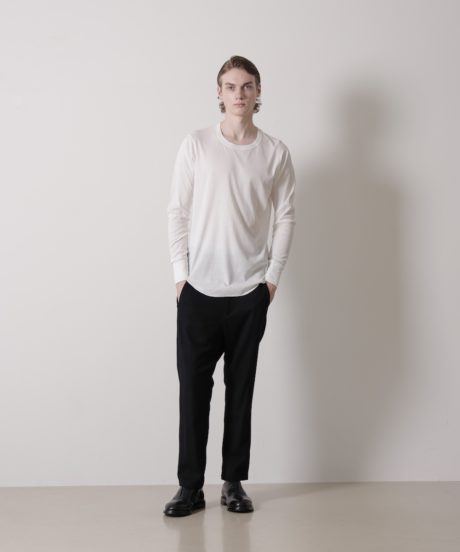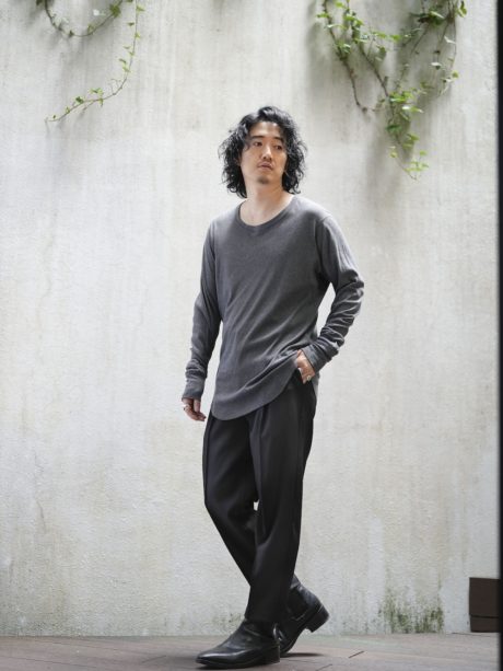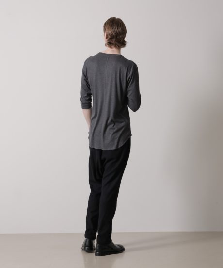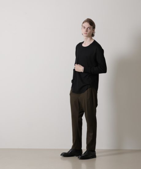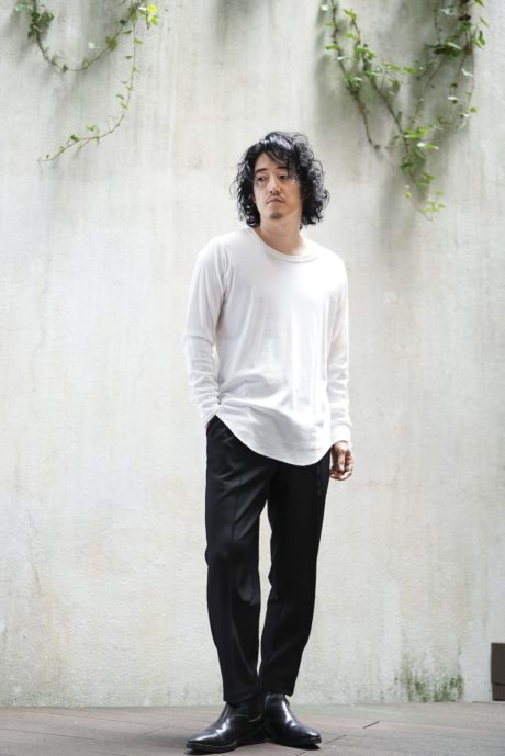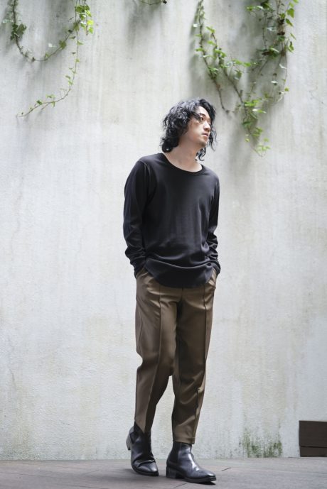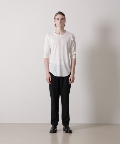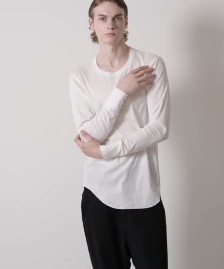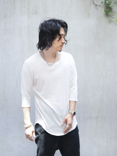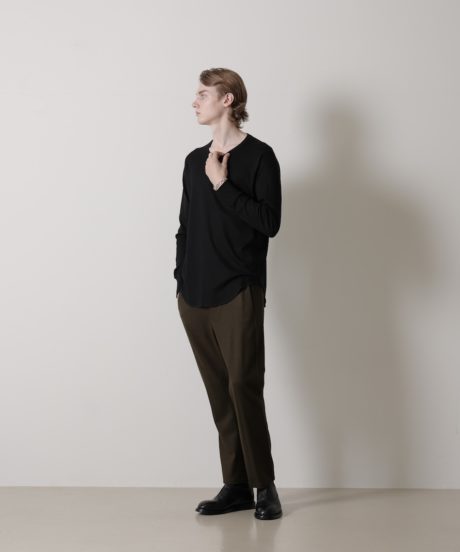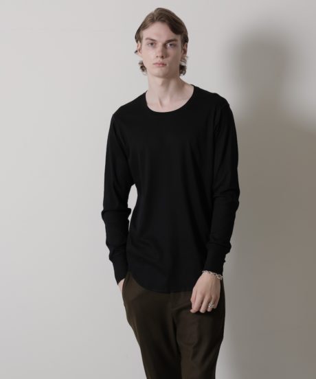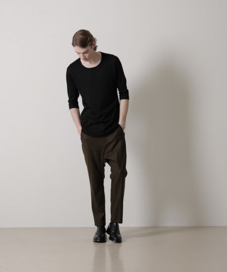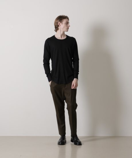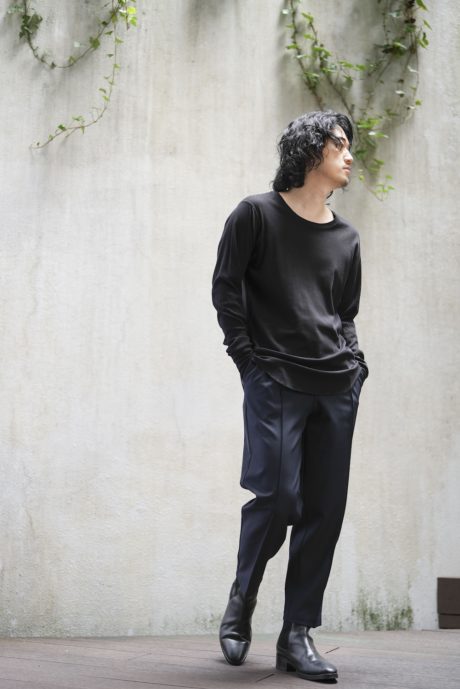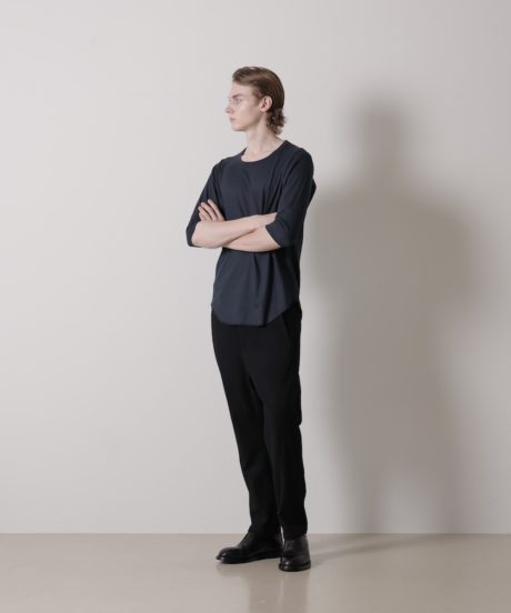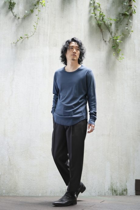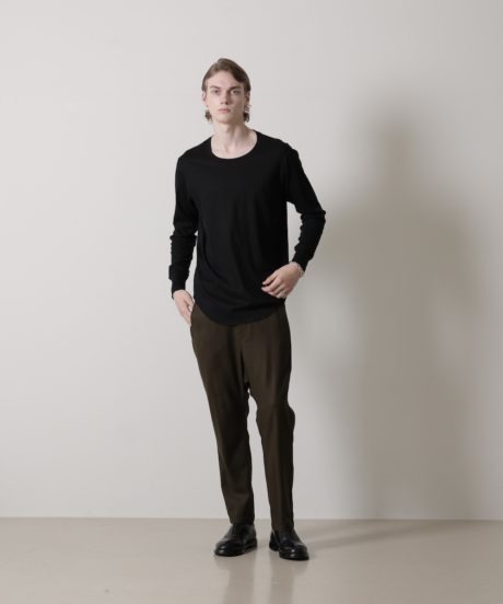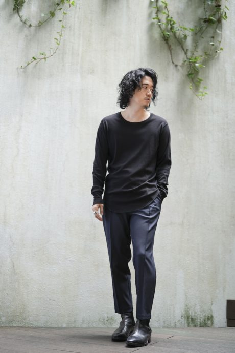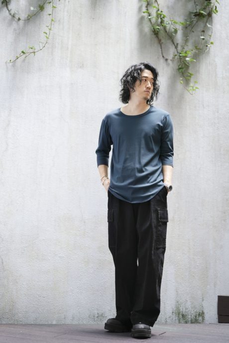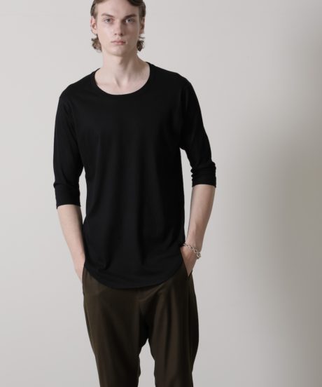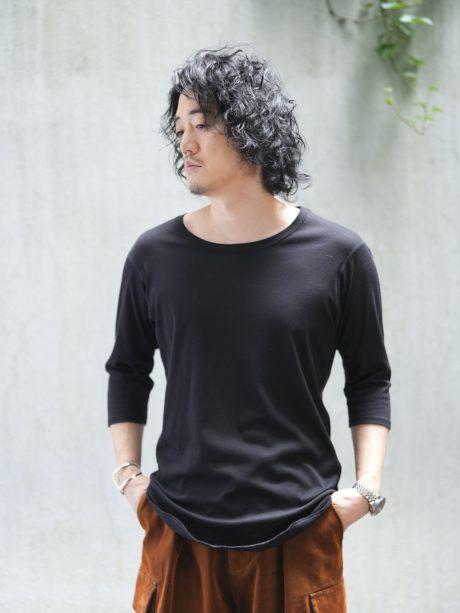 そのため、1枚で着てもサマになり、タックインしても美しく、インナーとしても機能する万能カットソーになっています。