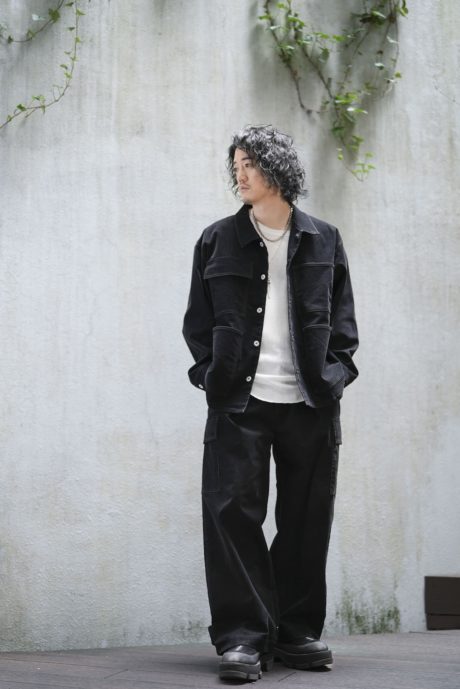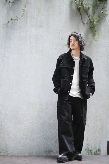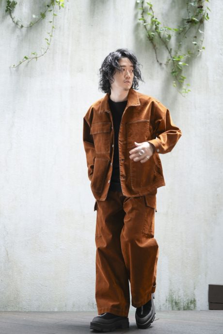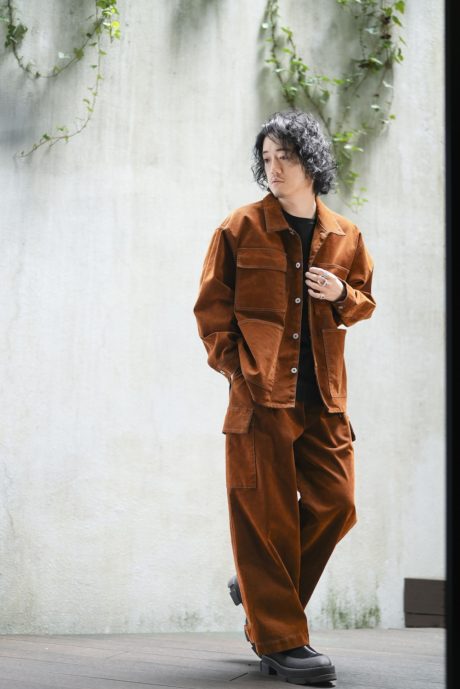 テーラードのセットアップに慣れている方も、こうしたカジュアルな素材とシルエットで組むことで新鮮な印象を得られると思います。