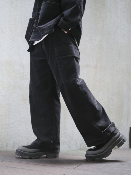 ミリタリーの無骨さを残しつつ、ラグジュアリーな素材感と光沢感でモダンにアップデートしています。