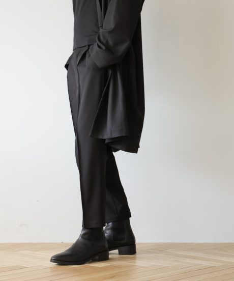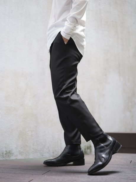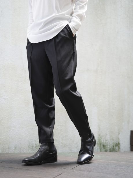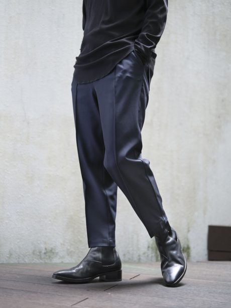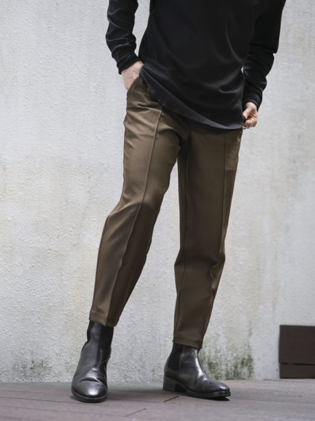 足のラインが自然に細く見えるよう設計されていて、裾にかけてのテーパードの入り方が絶妙。