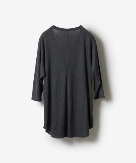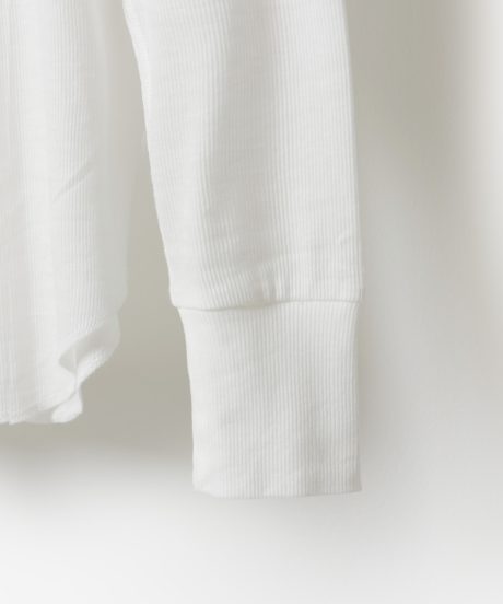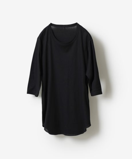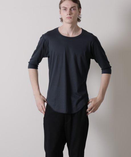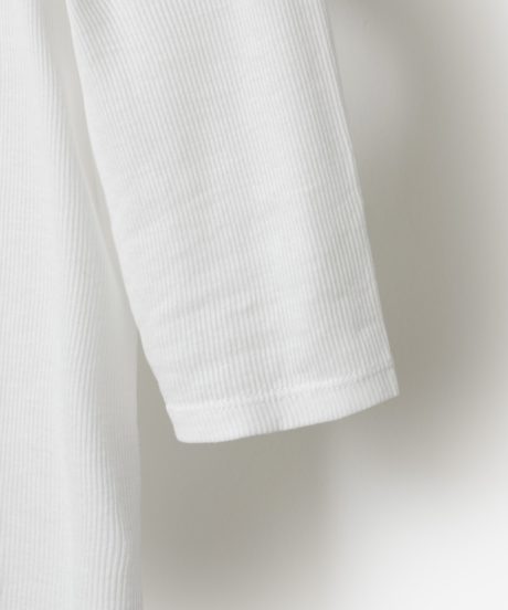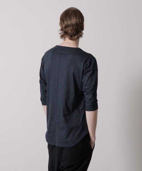 七分袖の方は袖先にリブを付けず、すっきりと折り返し仕様にしています。