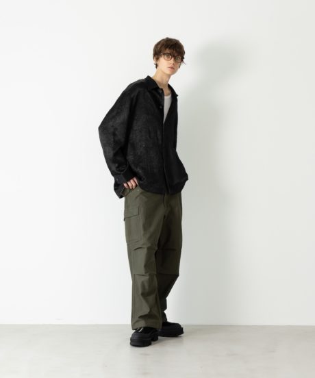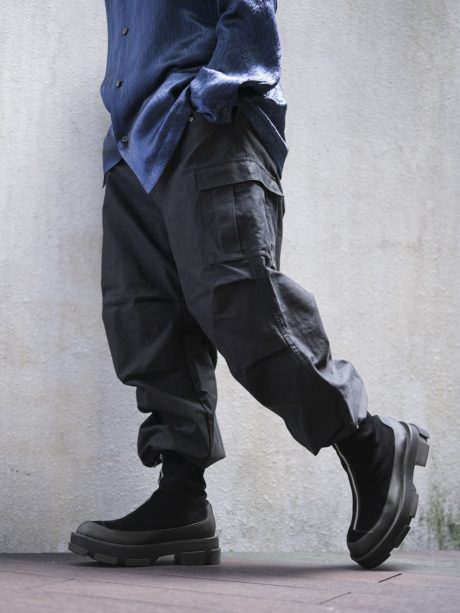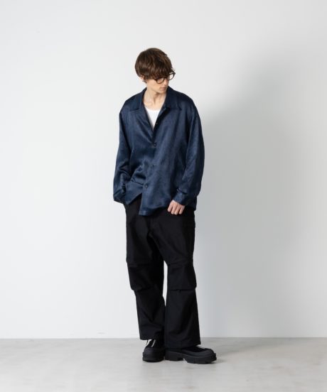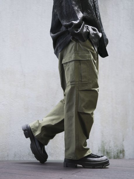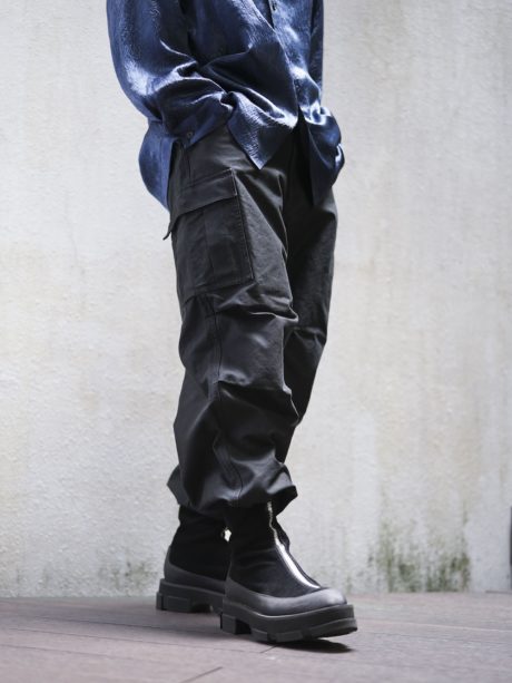 もちろんこの合わせではなく単体同士で使うことも全然ありですが、個人的にサテン地のブルゾンにミリタリーのカーゴパンツを合わせて、ブーツを合わせるというスタイリングがめちゃくちゃ好き。