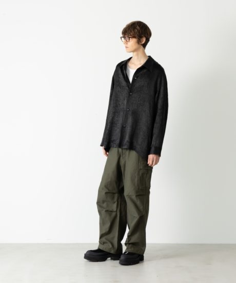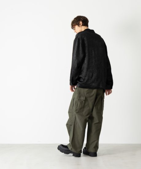 太さはありますが、膝のあたりにアクションプリーツを付けたり、裾もそこまで長くしていないので、程よくジャストなレングスぐらい。