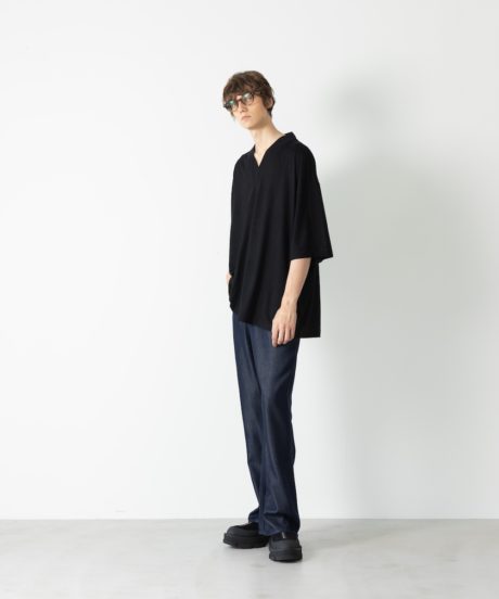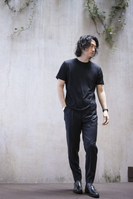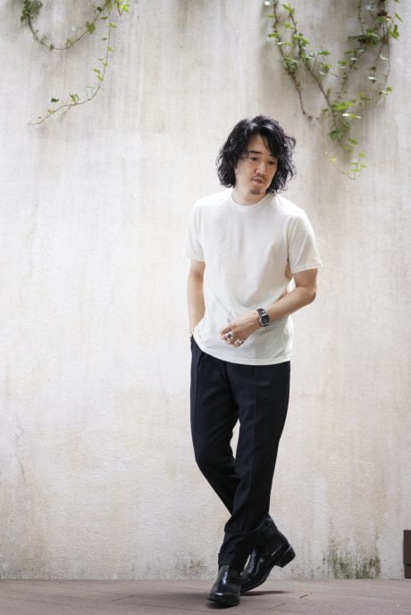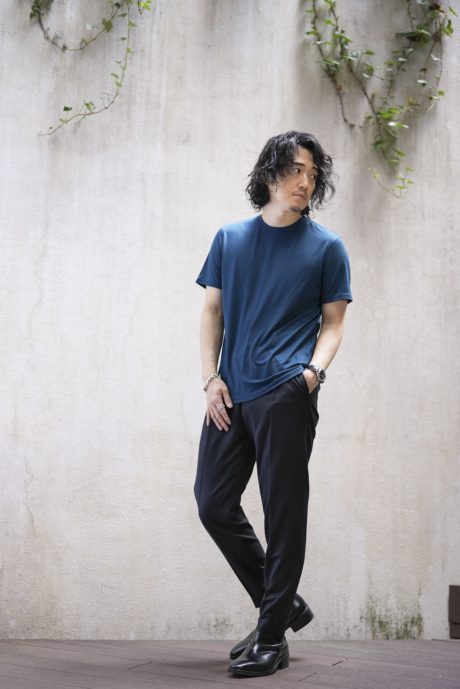 ジャケットのインナーとしても相性が良いですし、細身のスラックスと合わせて、夏のビジネスカジュアルスタイルを組むのもおすすめです。