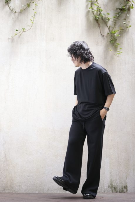 コットンニットの最高峰とも言われるウズベキスタン・サマルカンドの原料を使用しセットアップを制作しました。