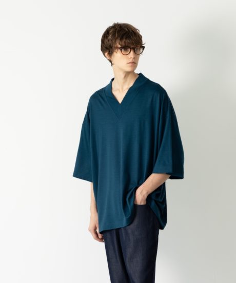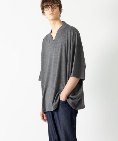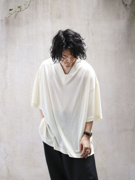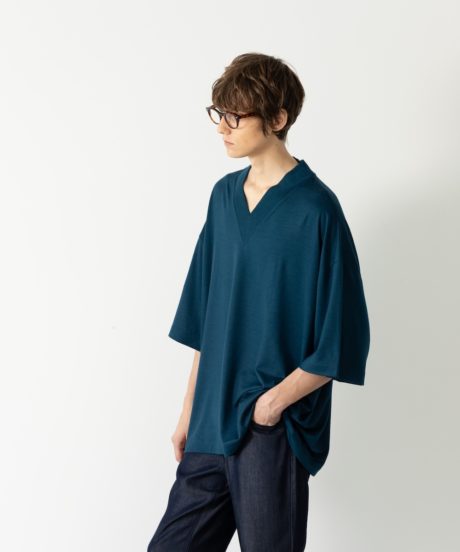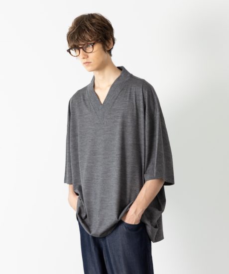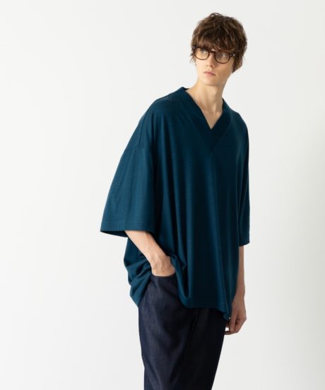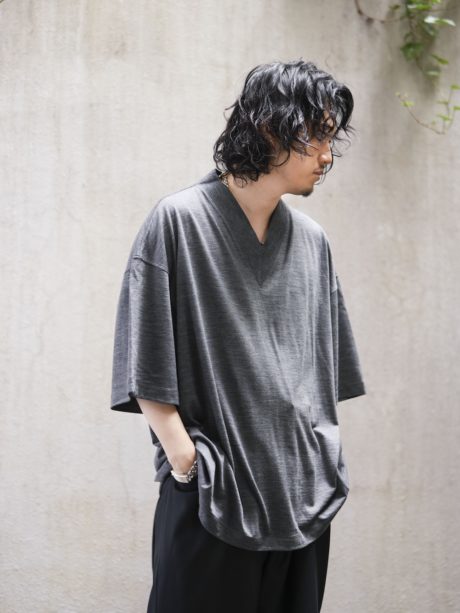 MBハイエンド尾州ウールTシャツ ビッグVネックプルオーバー