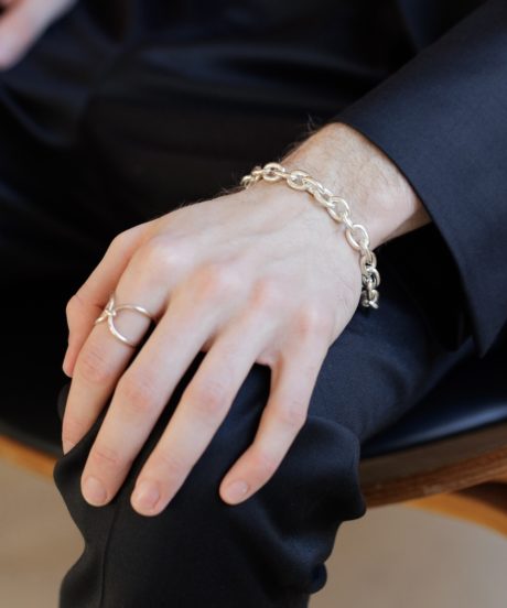 アンカーチェーンシリーズからは新作のビッグバングル。こちらはかなりカーブを強めたデザインになっており上品でアンティーク調の仕上がりになっています。MBは上記のケーブルチェーンブレスと組み合わせて使うことが多いです。