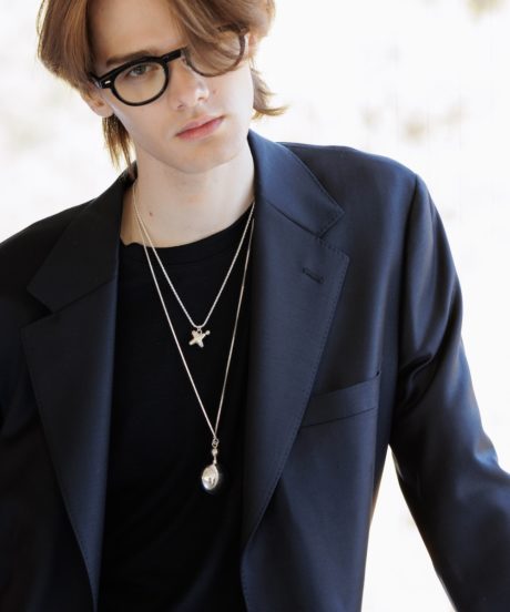 華奢なチェーンと光沢の強いトップのコントラストが美しいネックレス。OとXの重ね付けをMBは好んでいます。またリングはOタイプは現在開発中。先にXタイプのみを展開します。