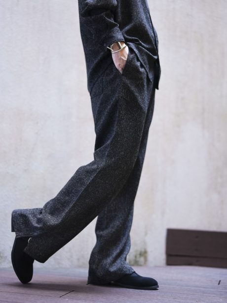 ただ、ツイード自体のトレンドは確かにあるし、僕自身もツイードを着たいと思ったので、フェミニンな印象には寄せすぎず、大人っぽさを崩さないツイードのセットアップを作れないか、というところで今回チャレンジしました。