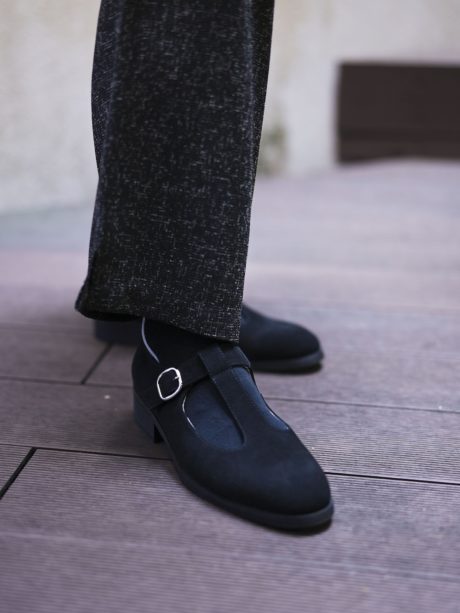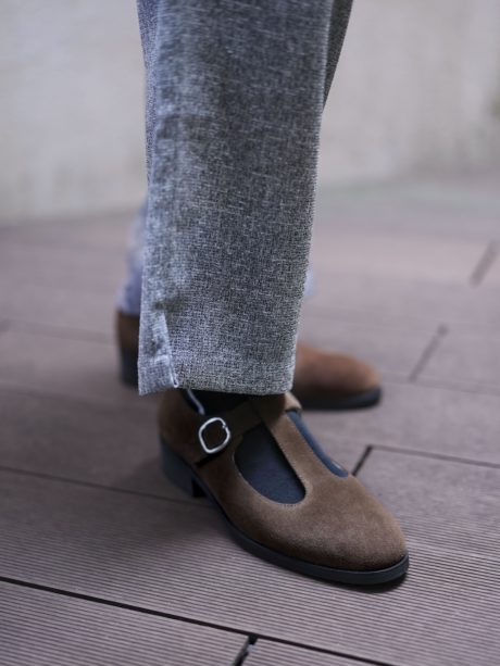 個人的には、ブラウンのツイードのセットアップに、このスエードのメリージェーンを合わせるのがめちゃくちゃ渋くて好み。