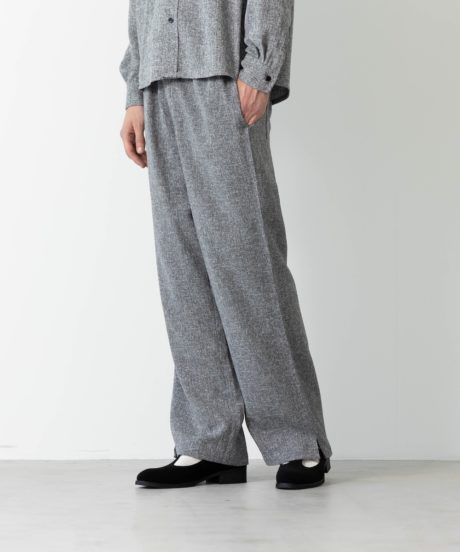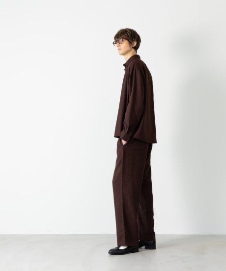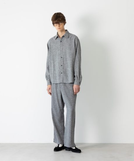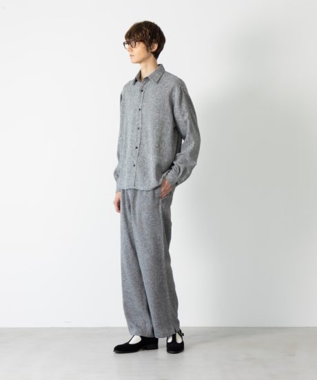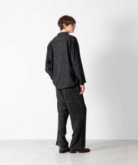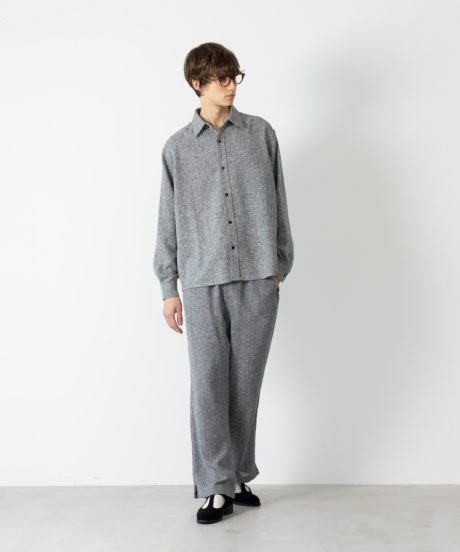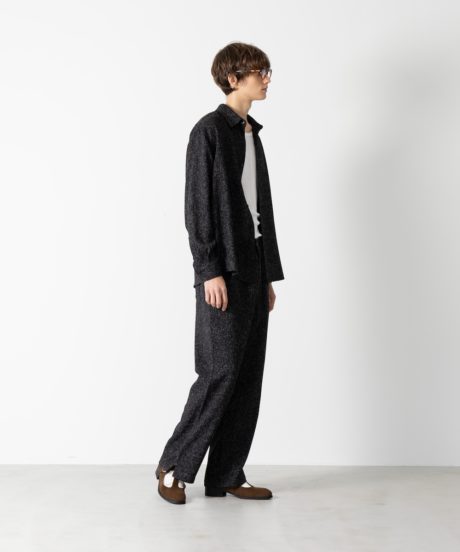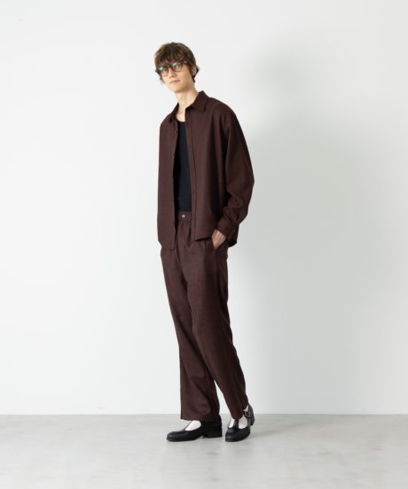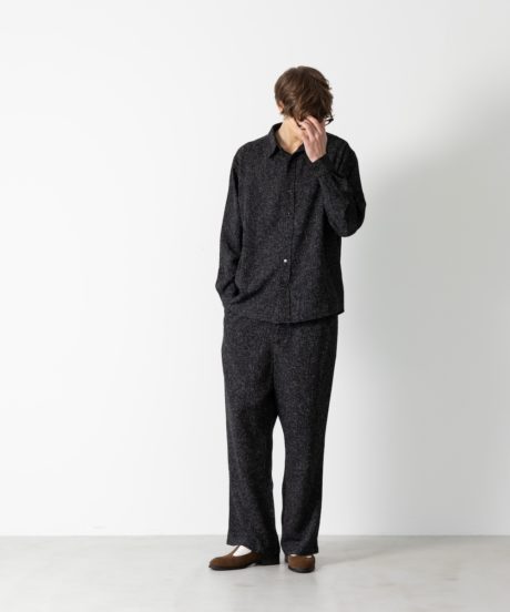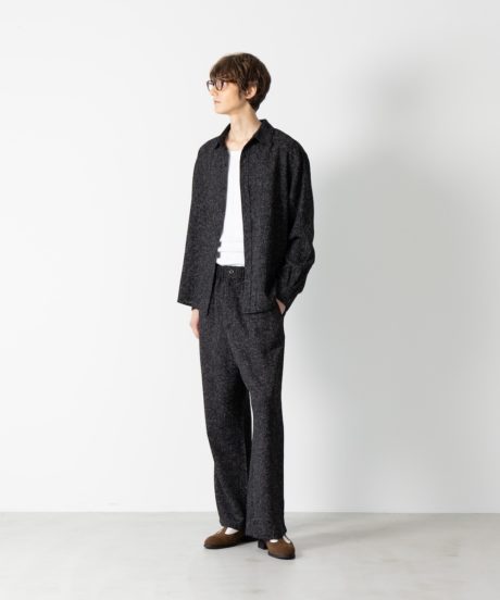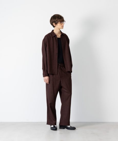 今回は3色展開で制作した、ツイードのシャツとパンツのセットアップです。
