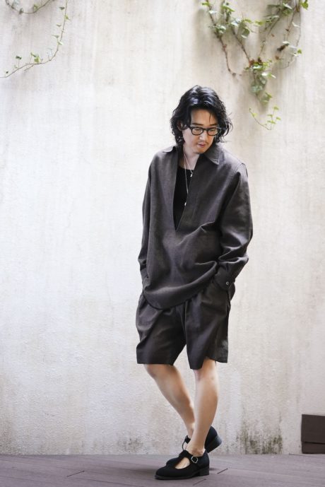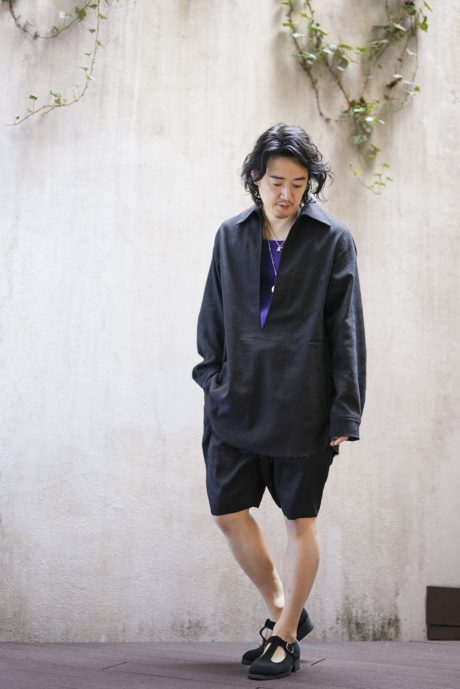 1枚で成立するよう、着丈は長めに設定し、フロントにはポケットも付けています。