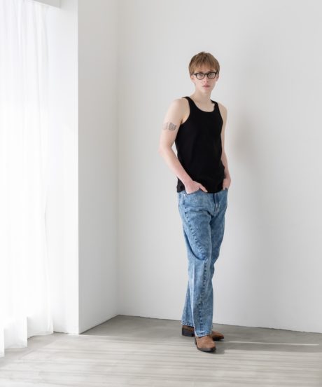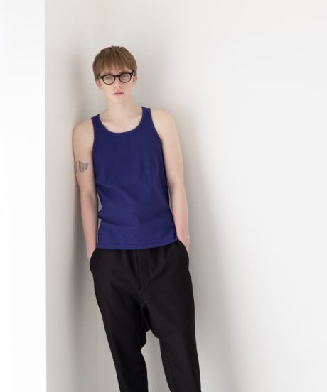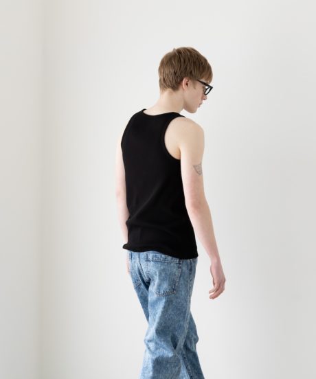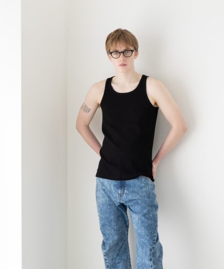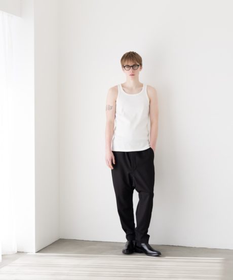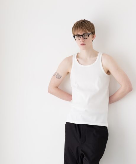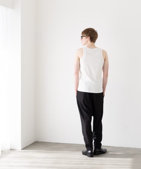 胸元の開きやストラップの細さは、僕が長年タンクトップを着続けてきた中で辿り着いた最適解に近いバランスに仕上げました。
