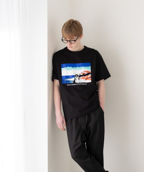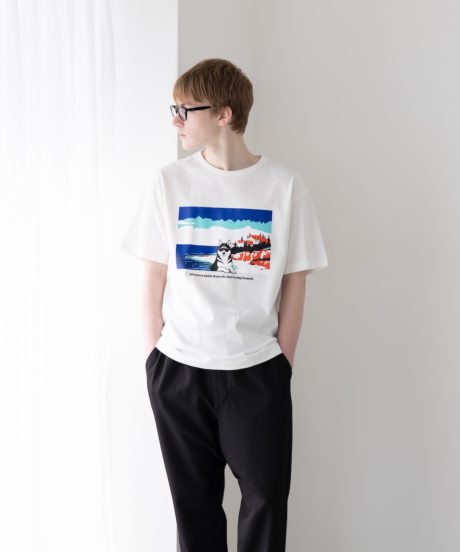 グラフィックを使ったTシャツを2年がかりで開発しました。夏らしい遊び心と陽気な雰囲気のグラフィック。そこに相反するようにソリッドな素材感とモードライクなシルエット。これが夏の答えだ!!!