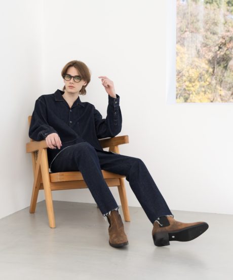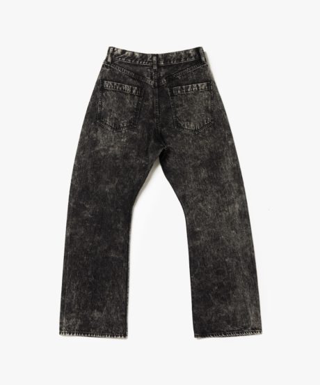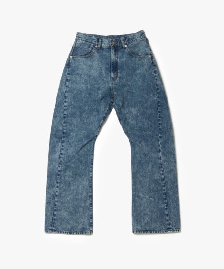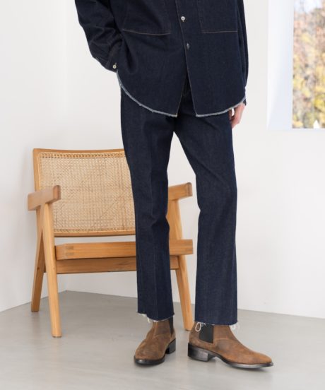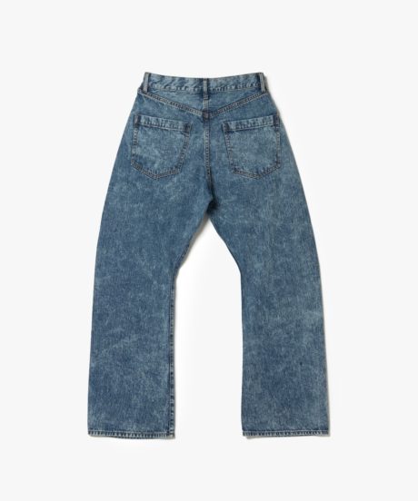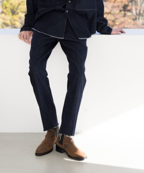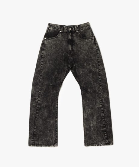 さらにデニムはY2Kを思わせる立体裁断のシルエット。足にまきつくような新しい感覚は癖になる。さらに素材は日本が誇る世界的なデニムメーカー「KUROKI」のもの。メゾンブランドもこぞって採用するこちらの素材を贅沢にもケミカルウォッシュで大人に味付けしました。
