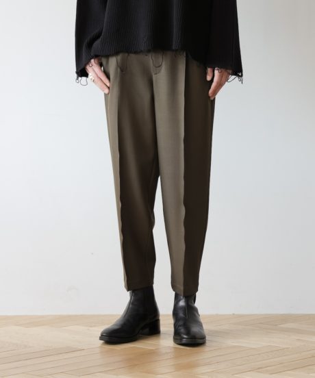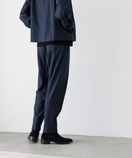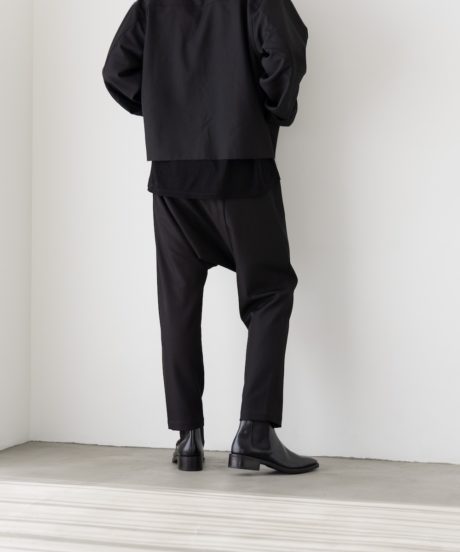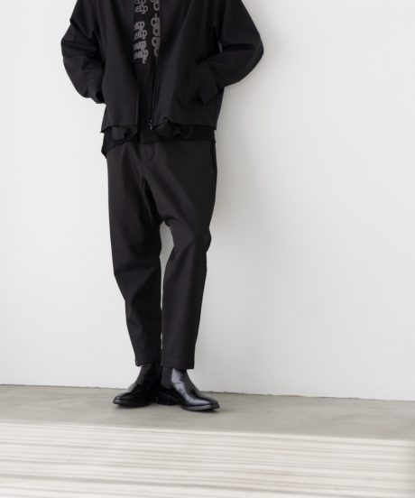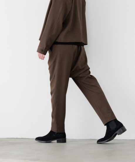 ベースはスラックスなので上品なんですが、イージーウエスト仕様にしていたり、サルエル特有のカジュアル要素もきちんと入れました。