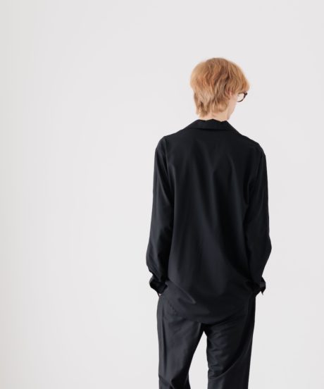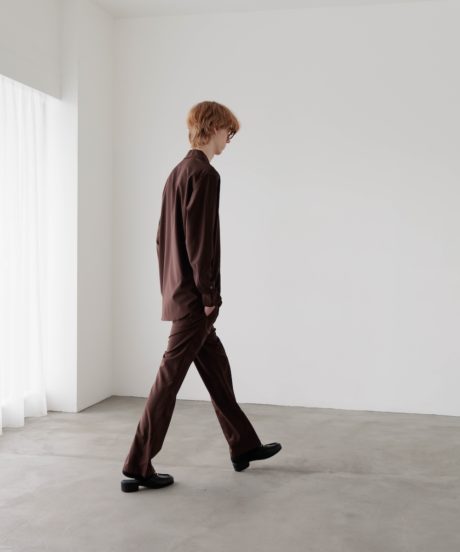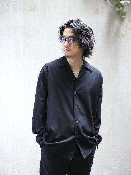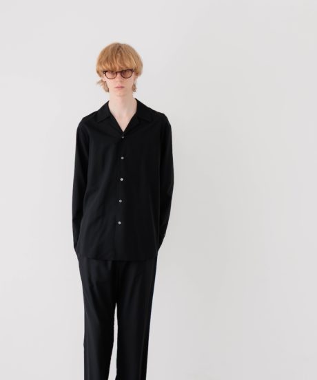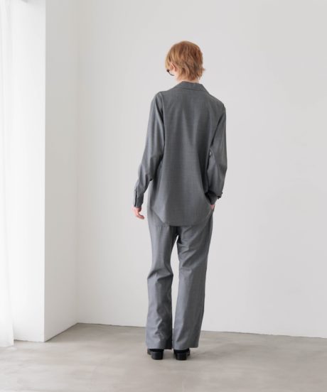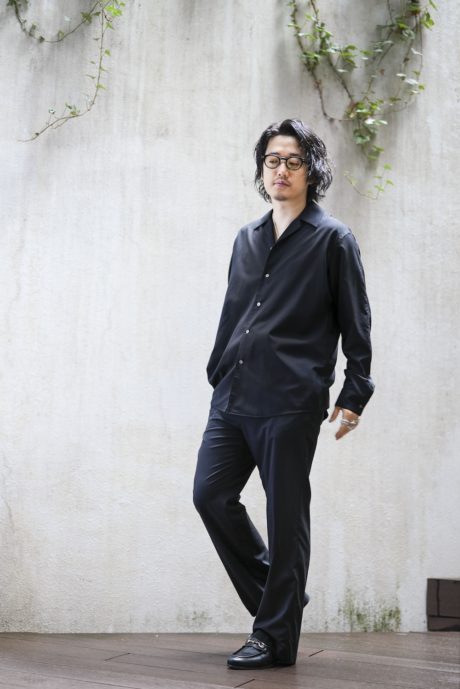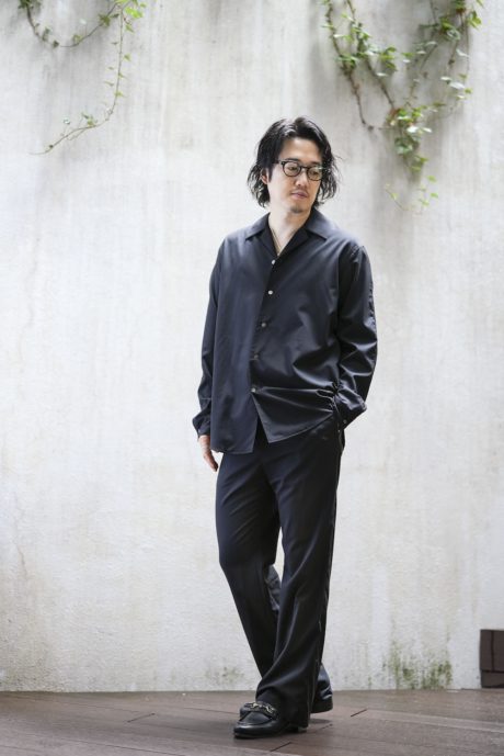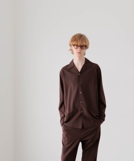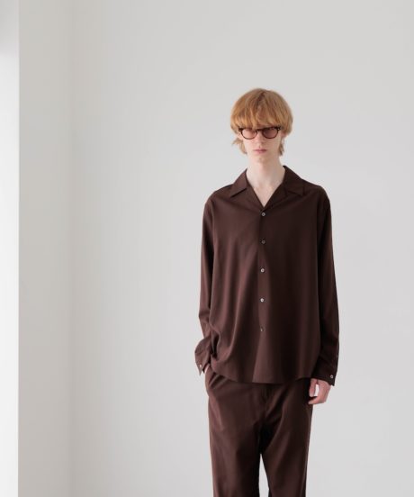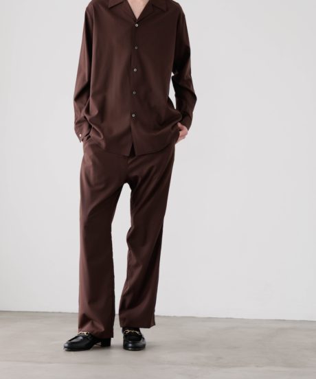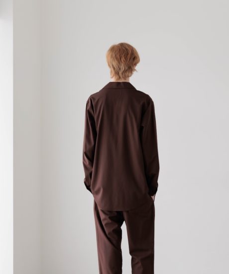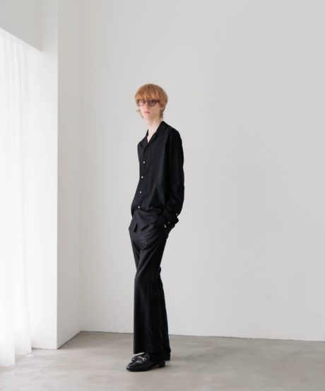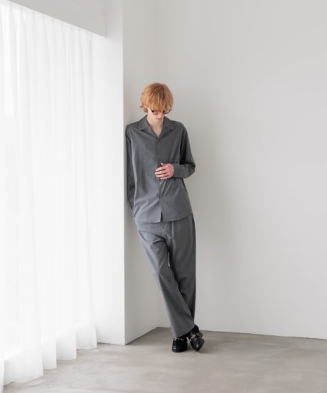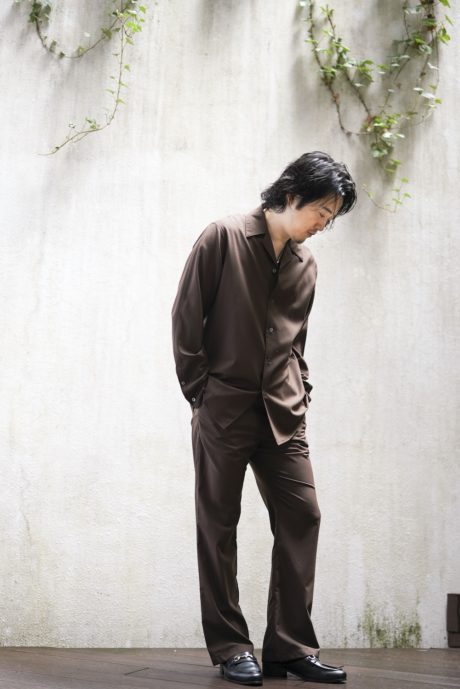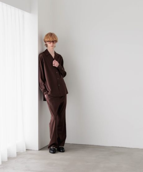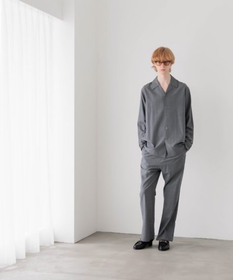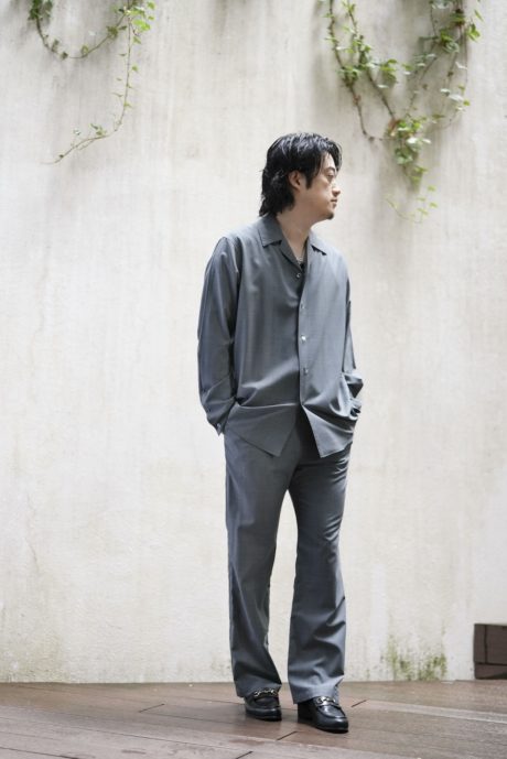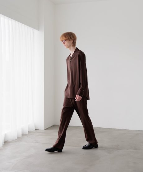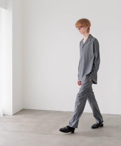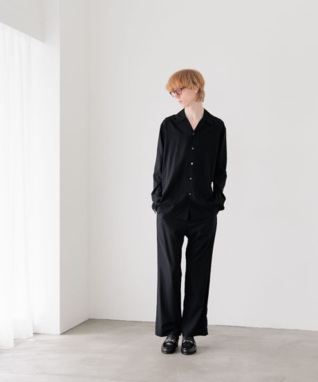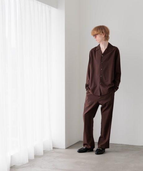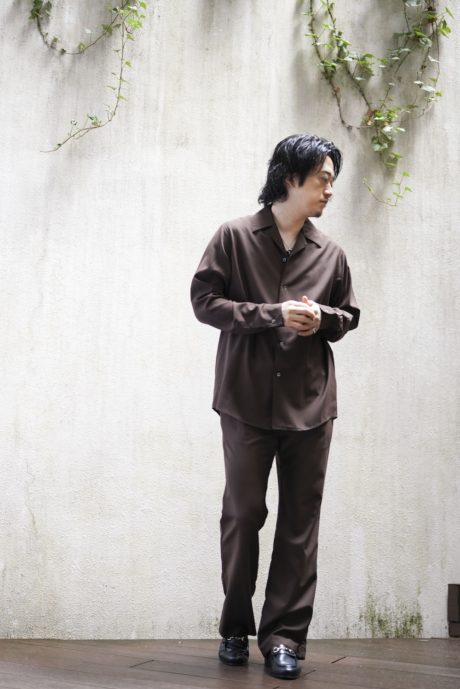 オープンカラーのシャツと、同素材で作ったリラックストラウザーズです。