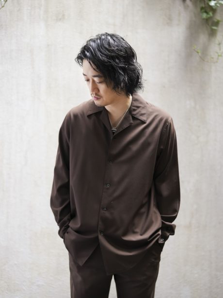 シャツ単体でももちろんいいですし、例えばブラウンのパンツにブラックのシャツを合わせたり、ブラックのパンツにグレーのシャツを合わせたり、色をクロスさせても格好いいと思います。