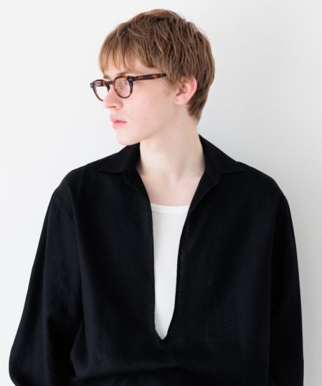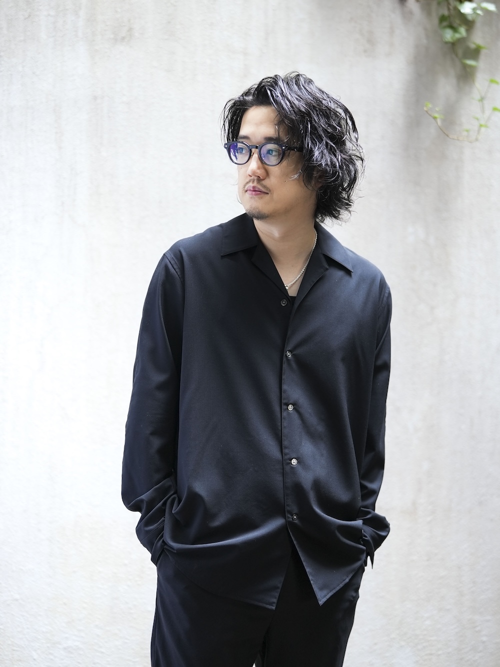 また襟はオープンカラーとレギュラーカラーの中間にあたるような「低めの襟」に設定しています。思い切りのオープンカラーだとパジャマ感が強くなりそうだったので、低めの襟にして襟はプレスをかけすぎず程よい柔らかさにしました。