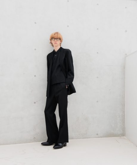 もちろん単体使いも。スラックスの美しいシルエットはため息が出るほど。ウエストラインは細く裾に向けてわずかに広がった大人なラインはたまりません。ジレもシャツと合わせることでかなり面白い表情に。ジャケットはデニムと合わせても問題ないほど汎用性は高い。これはほんと苦労しただけありました。