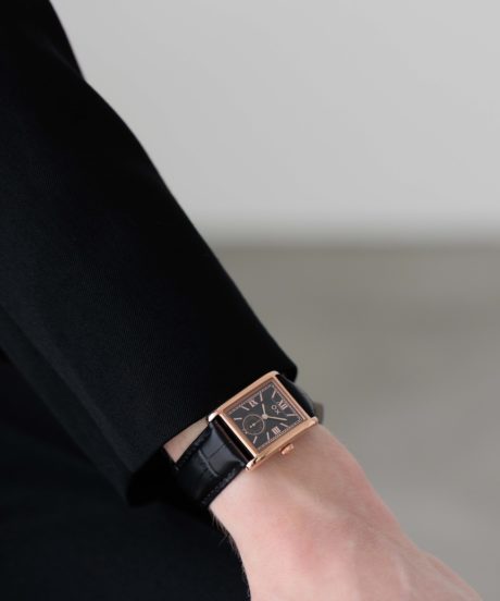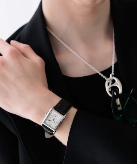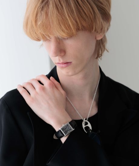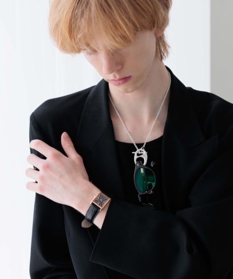そんなMBウォッチの歴史の中で今回は原点回帰とも呼べるものに。今まで作った中で最も反響の大きかったファーストモデルのレクタングルウォッチを再構成。立体的な文字盤や角を取り払った光沢のあるケースなどアンダー10万円の時計とは思えない作りで人気を呼んだモデルを復刻。前回はMBアイテム名義でしたが今回はOXジュエリー名義にしてより「宝飾品」としての印象を強めました。