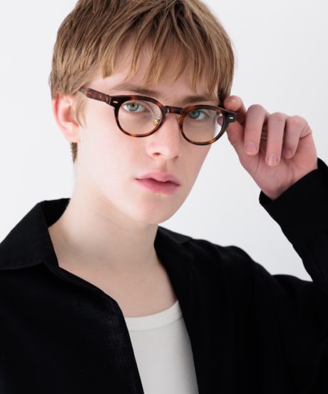 クラウンパント特有のクラシックさを持ちつつも、ややモダン寄りに調整した細めのセルフレームにしているため、今のスタイルにも自然に馴染むデザインです。